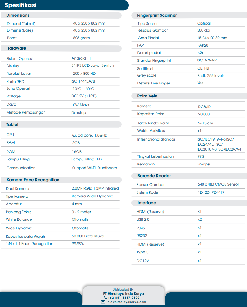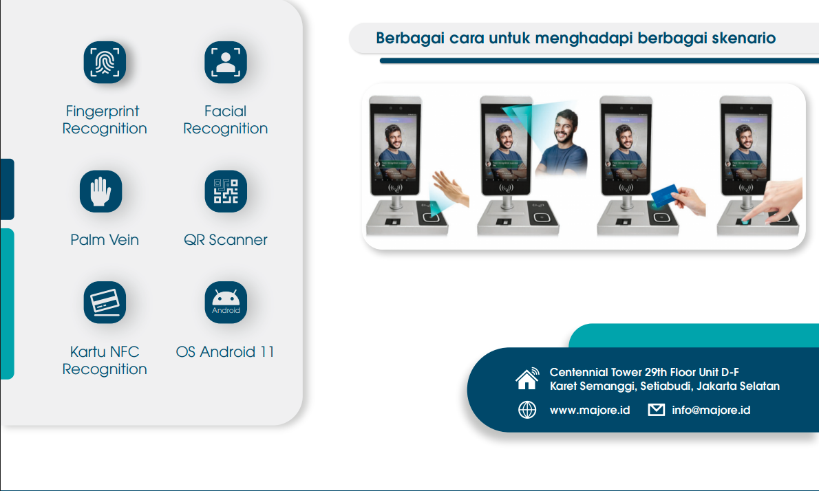 M-One V501 merupakan solusi terminal pembayaran generasi terbaru yang dirancang untuk menghadirkan pengalaman transaksi yang cepat, aman, dan praktis. Dilengkapi dengan teknologi pengenalan multi-biometrik, M-One V501 mendukung verifikasi identitas melalui pengenalan wajah, sidik jari, telapak tangan, serta pembacaan kartu NFC. Dengan integrasi empat metode autentikasi ini, M-One V501 memberikan fleksibilitas tinggi dan tingkat keamanan maksimal bagi berbagai kebutuhan transaksi, baik di sektor ritel, perbankan, transportasi, hingga layanan publik.