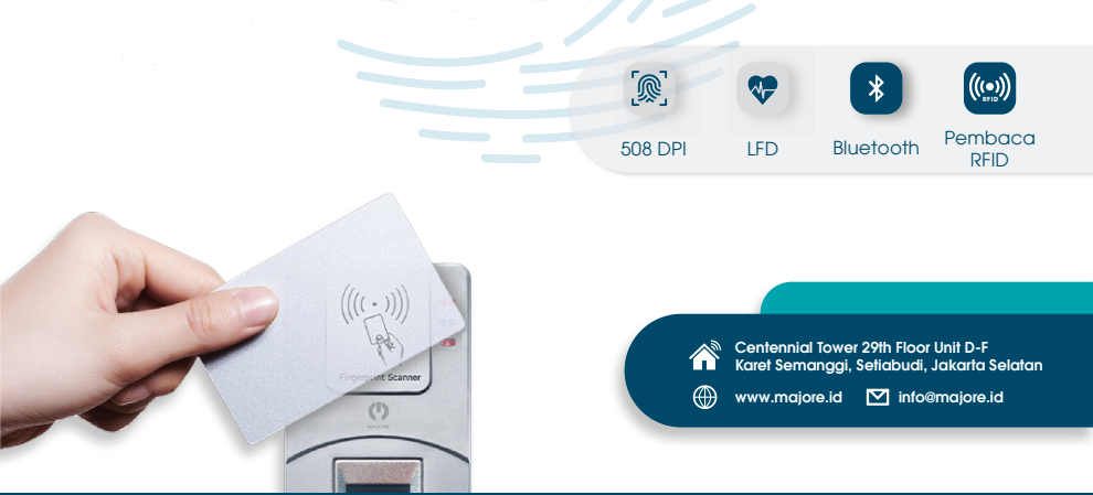 Dilengkapi dengan teknologi NFC dan RFID, Majore FB1000 mampu melakukan autentikasi berbasis kartu dan tag pintar, menjadikannya pilihan tepat untuk sistem keamanan dan verifikasi identitas yang modern.